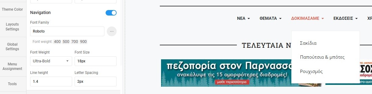 Hi I am trying to set the menu font (template Blockk) but it has no effect (Foto_2). I downloaded the Piurity IV, and made the settings I wanted with no problem (foto_3). But I noticed that in the blocKk template, there is the setting of photo 1, which is not in the Piurity template. What's wrong?