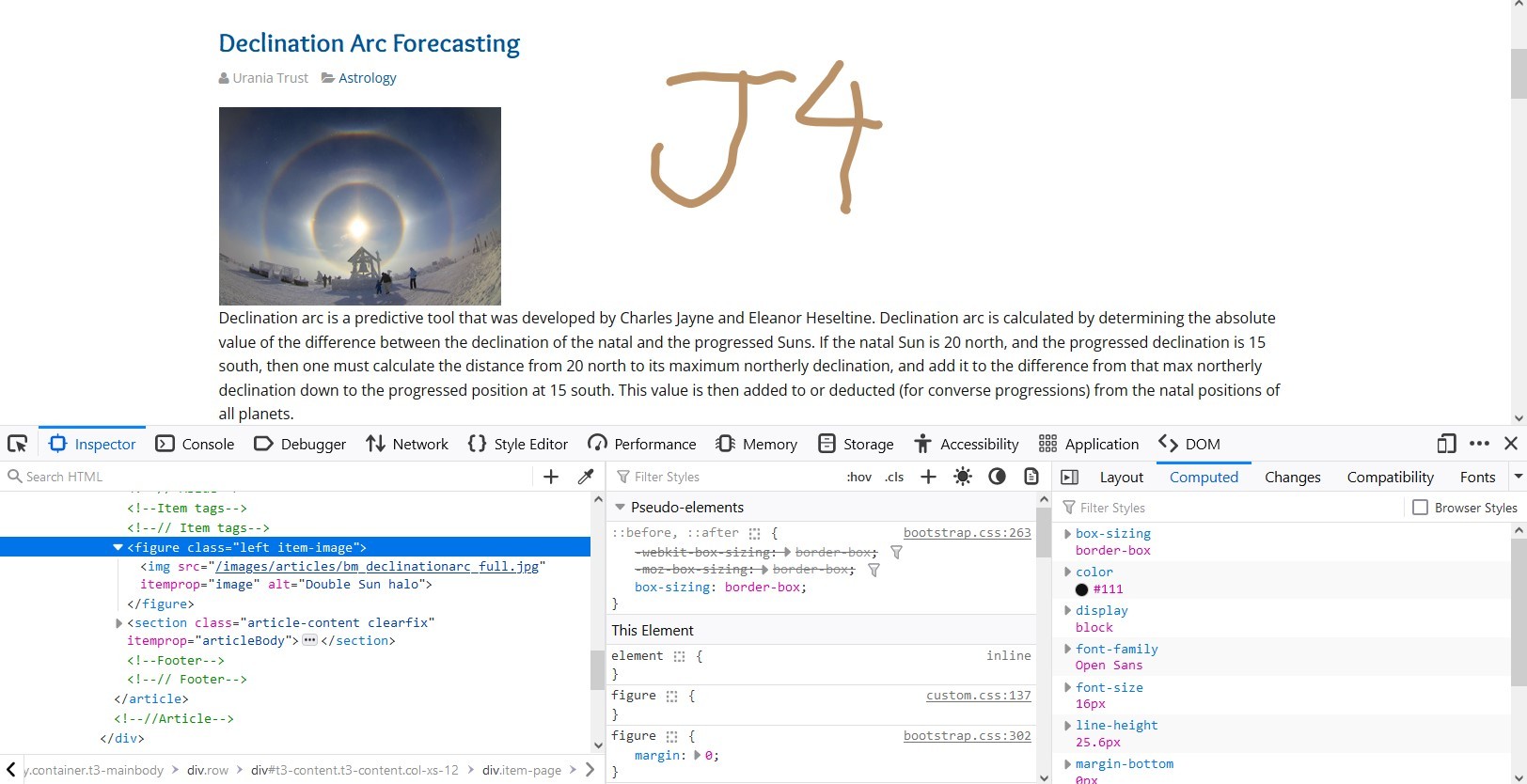 I'm doing a test upgrade on a client's site from Joomla 3 to Joomla 4; the site uses the T3 framework and plugin, and the T3_bs3-empty template. The update went fine, but I've discovered there are changes in the HTML which have caused some of my CSS to be missed. I posted about this in a Joomla forum and no one seems to know if this change comes from Joomla or the template I'm using, so I'm posting it here too to see if this is a T3 template thing. For example, the full article image in J3 is wrapped in a Div tag with a class "pull-left" for floating it on the left side of the text. In J4, the same image is wrapped in a Figure tag, with a class "left". (see screenshots)