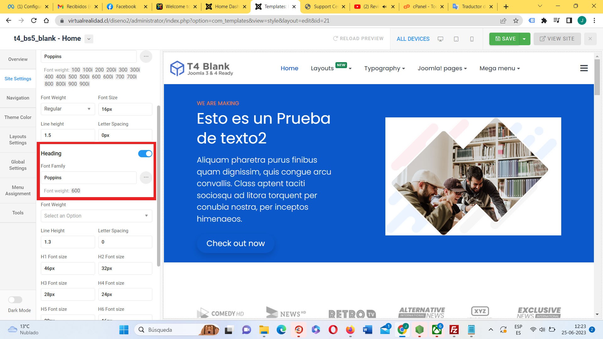 It does not save the changes, when wanting to change the font of the titles the change is not registered, I understand that it may be a restriction of the server but I would like to know specifically what the problem is to know if it is necessary to go to the hosting support with any specific request