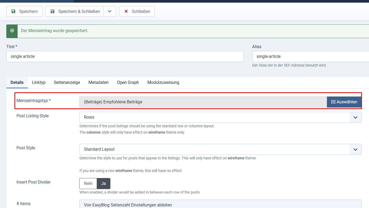 Whatever EasyBlog post we open, there are always all modules from 'Home' visible.