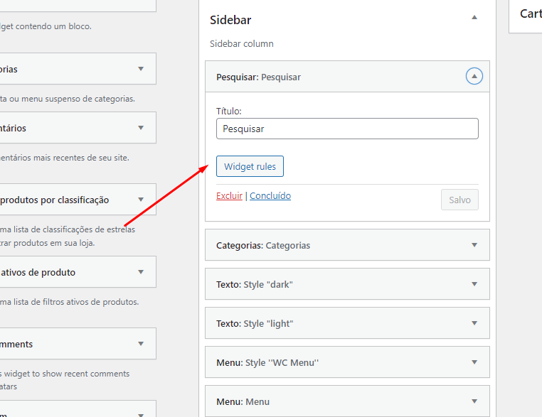 I'm using the StoreFront theme for Wordpress and I can't enable or disable the search module, calendar, categories and comments on the pages, even though I do this on each page.