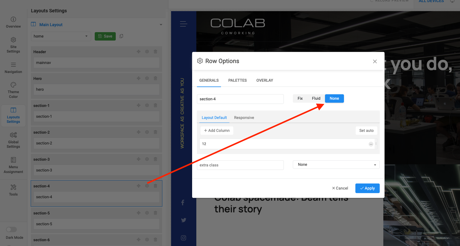You can access backend of your site >> Template styles >> open JA Colab >> Layout settings >> navigate to the section 4 >> and change to None:
