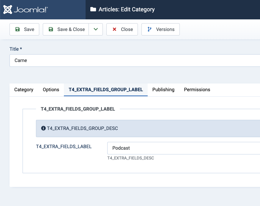 For example, the article in your 2nd screenshot is assigned to 'Carne' category, which is being assigned with 'Podcast' extra field so all extra fields tab will display.