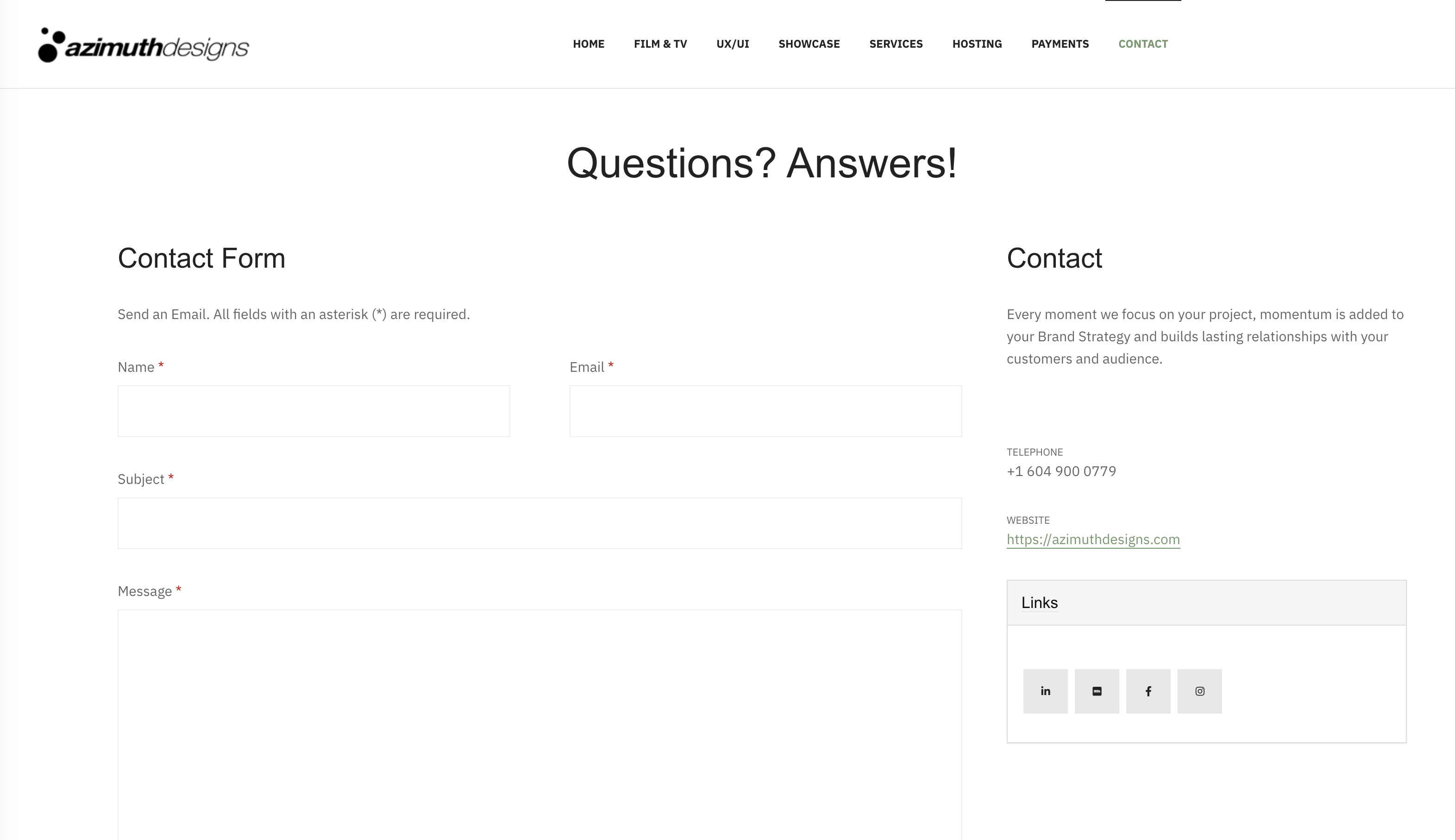 The Links on the Contact Page: https://azimuthdesigns.com/index.php/contact