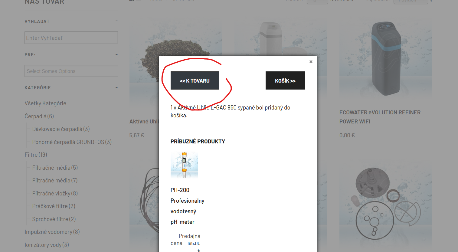 After adding the goods to the basket, I have the option to continue to the basket or return to the goods as shown in the picture