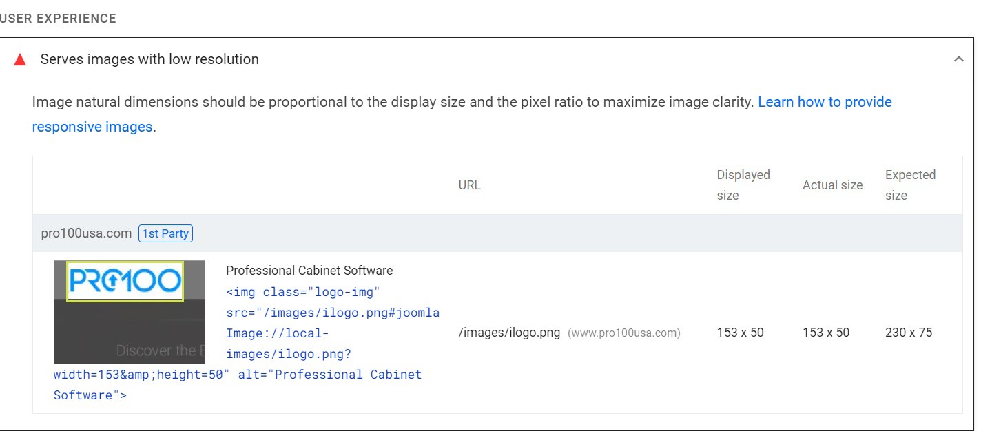 It reported the expected size there, you can edit the original logo image of your site to have dimensions of: 230 x 75