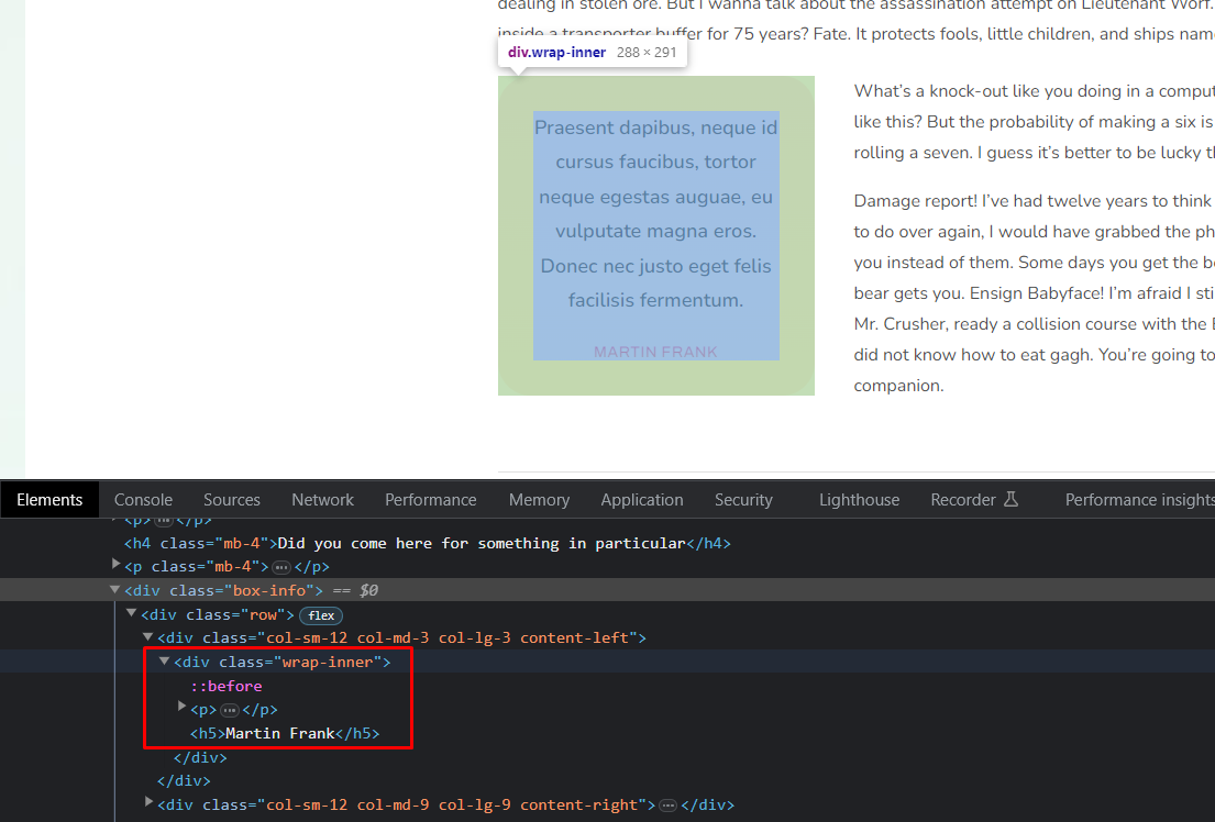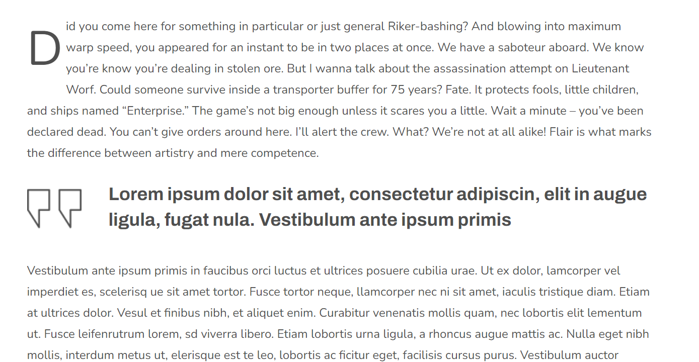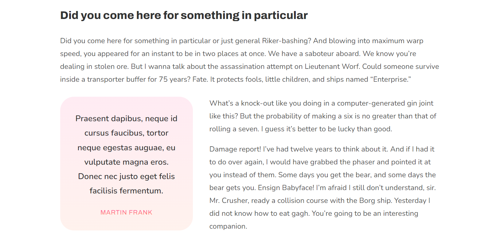 1/ About the first letter, you can use the following class: <p class="letter-first mb-4">Did you come here for</p>