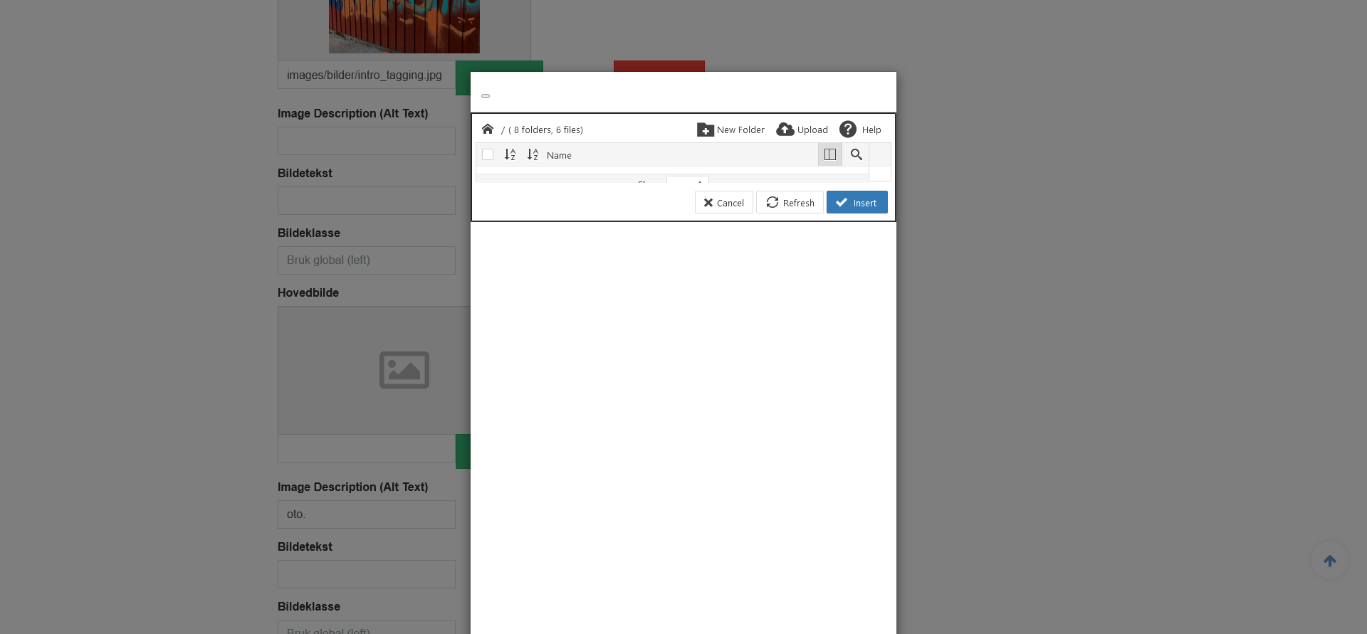Hello, I see there is a strange pop-up window when you have to insert the intro and main image in an article from the front page. A box appears where you cannot see any of the images. This applies not only to this website, but to every site that use the Uber template. Attaching a screenshot Regards Tor H