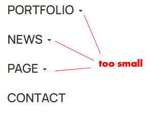 1) I understand the reason why the caret was added, but as mentioned, the small-screen mega-menu caret (in default JA Seven template <*every page other than home>) is simply too small (and practically impossible to click with a finger on a small screen).