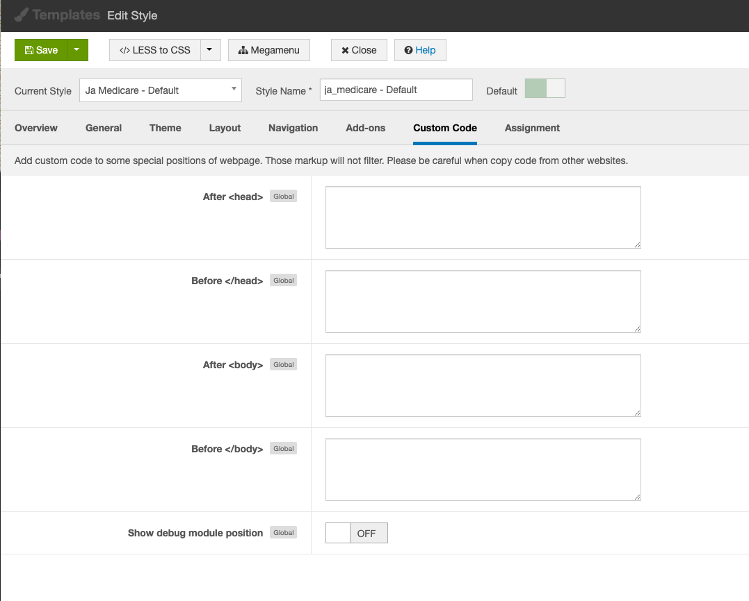 Hello, i'm using JA Medicare and I would like to put the Google tracking code, where do I configure it? Att., Rita Gonçalves