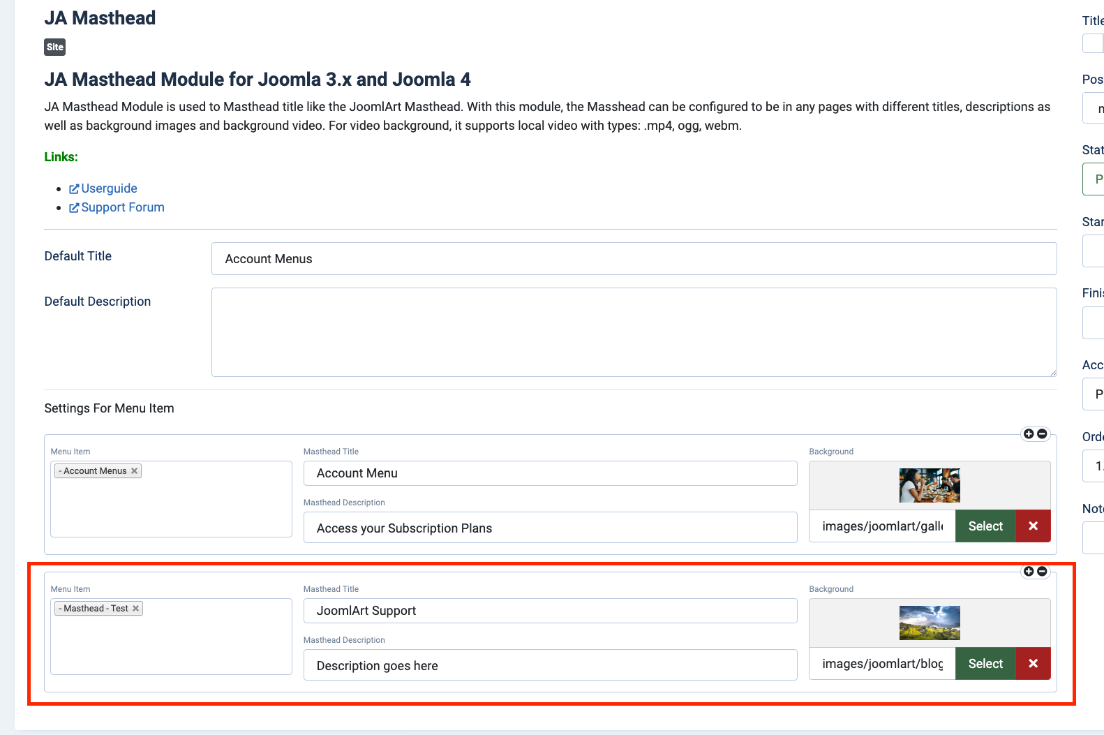 I can log into your site and see that you've not configured the module to set background for the masthead of that test page: