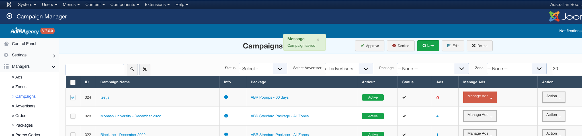 Basically I can't add any new Campaigns or edit any existing one's as it just doesn't save.