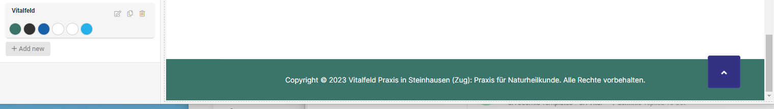 I have installed and activated template ja_vital and have created a color-palette for it, where I also chaned the background color. For the Header section, that works fine. In the footer-section the changed background color is shown correctly within the admin-page (changeing the template). But on the life site, the color is not changed and has the default color. See screenshots.