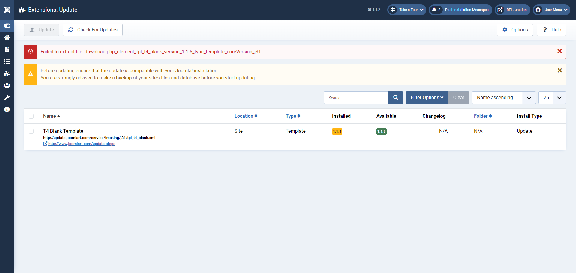 Hello, I am having another issue. The T4 Page Builder Template does not want to update. Please see the attached screenshot.