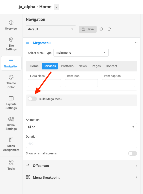 On our demo site, this template shows a menu module under the Services menu item, if you want to show multi levels for the dropdown menu, you need to disable the Builder Megamenu option