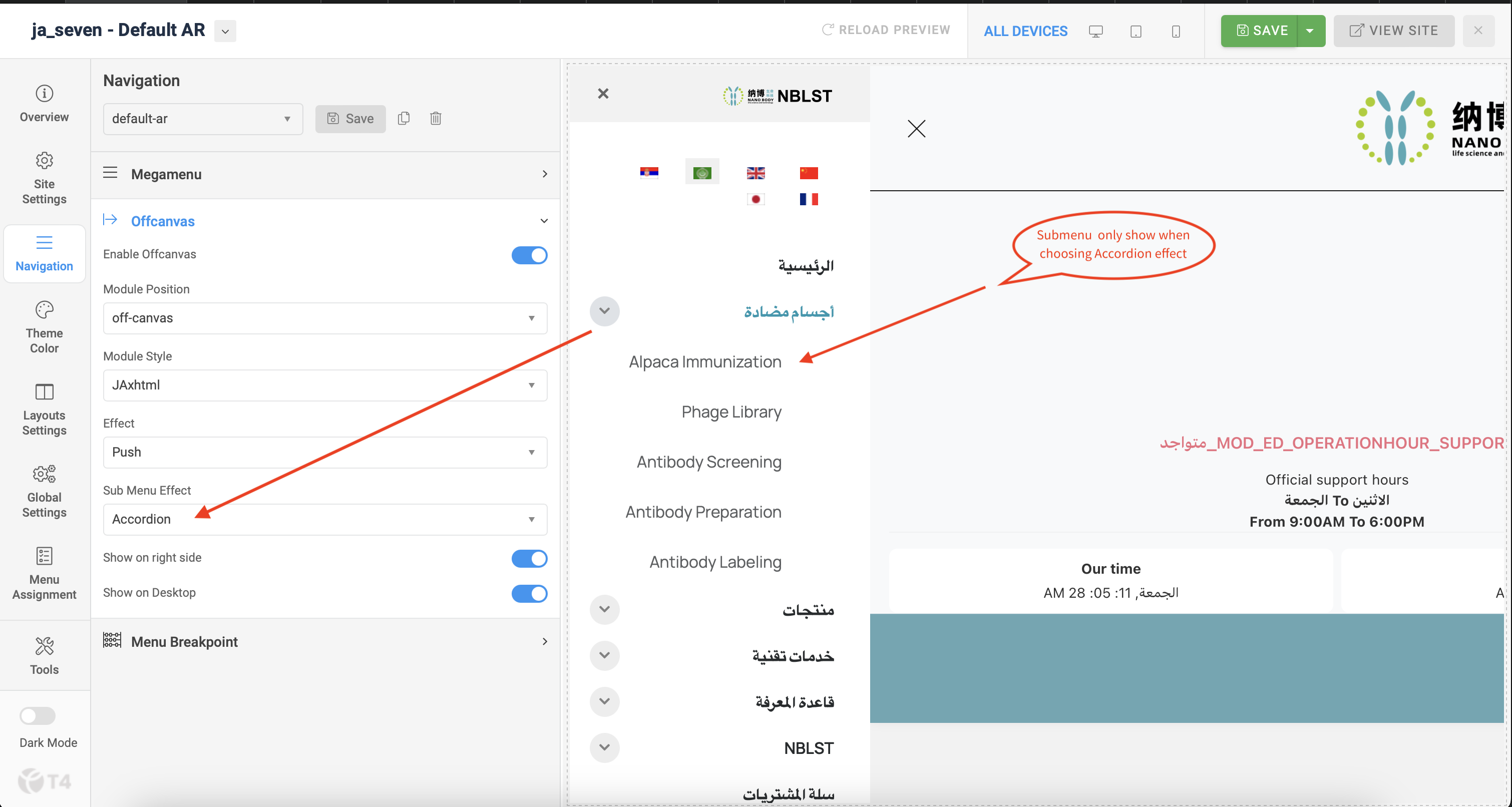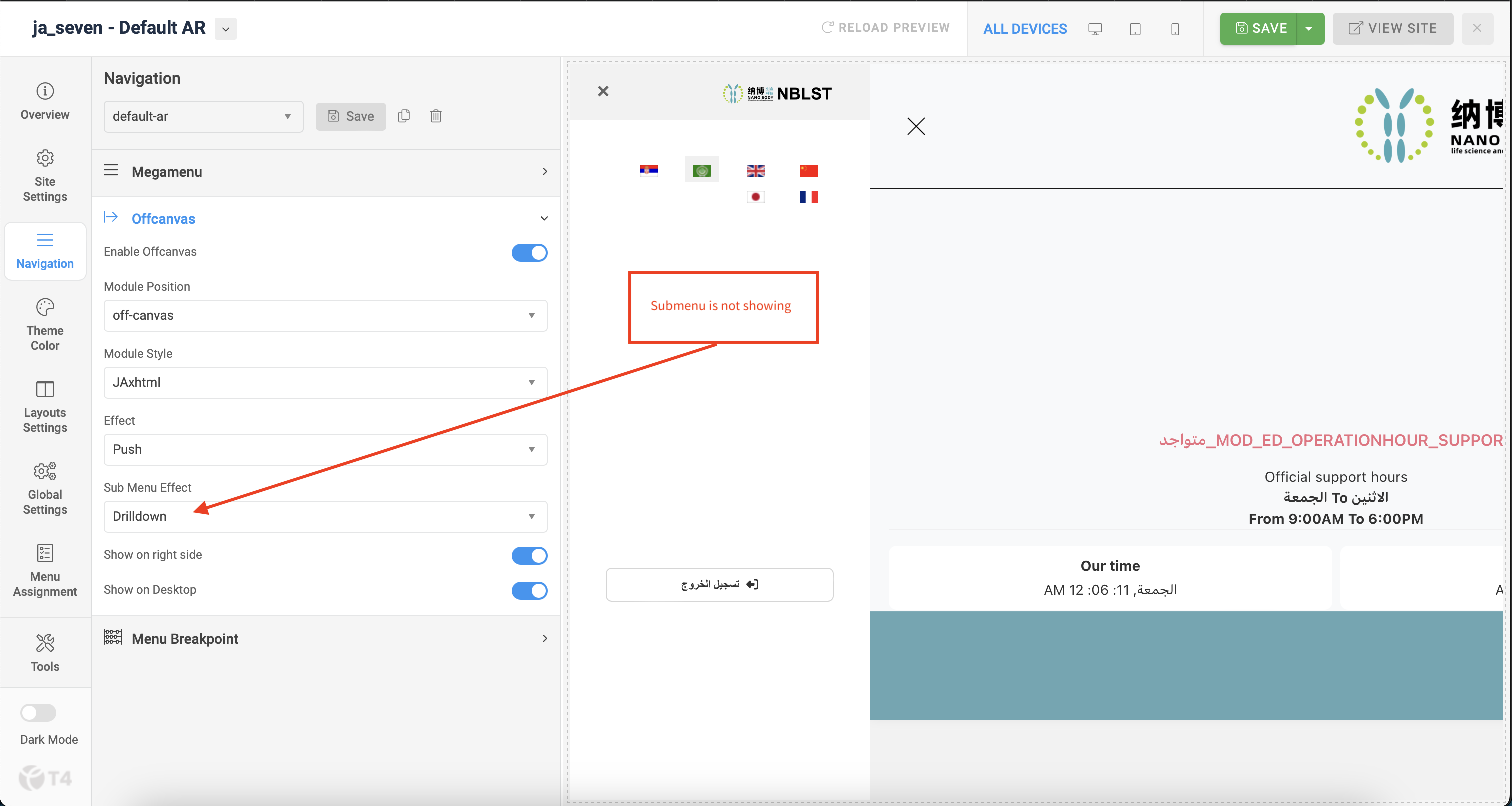 1- Submenu is not showing when using “Drilldown” for the sub menu effect, it’s only show when choosing Accordion effect.