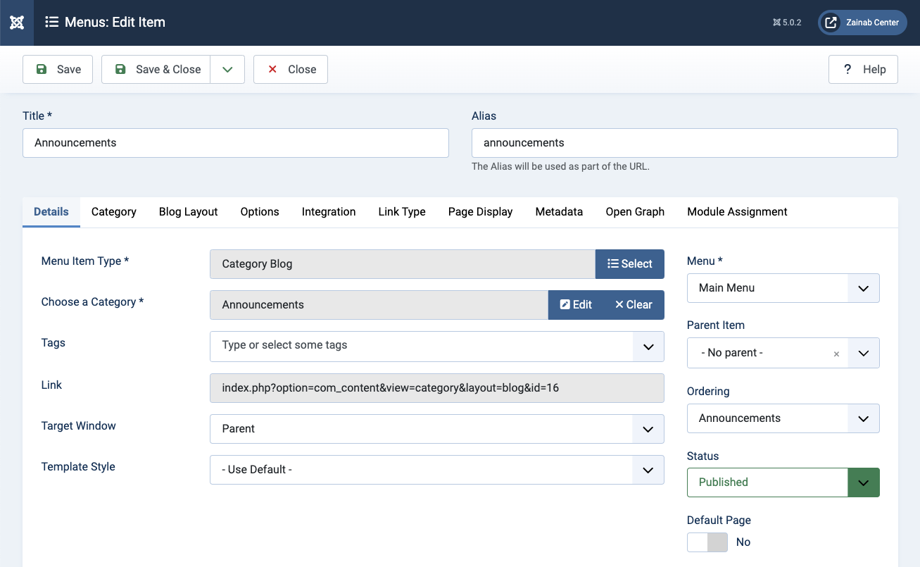 This module ID:150 is settings to show articles from 2 categories but there was no menu item type for these 2 categories yet. So I created a new menu item called Announcements under Home menu item ( I set it to be hidden on frontend now), this menu item is pointing to 'Annoucement' menu item - parent item of above 2 categories.