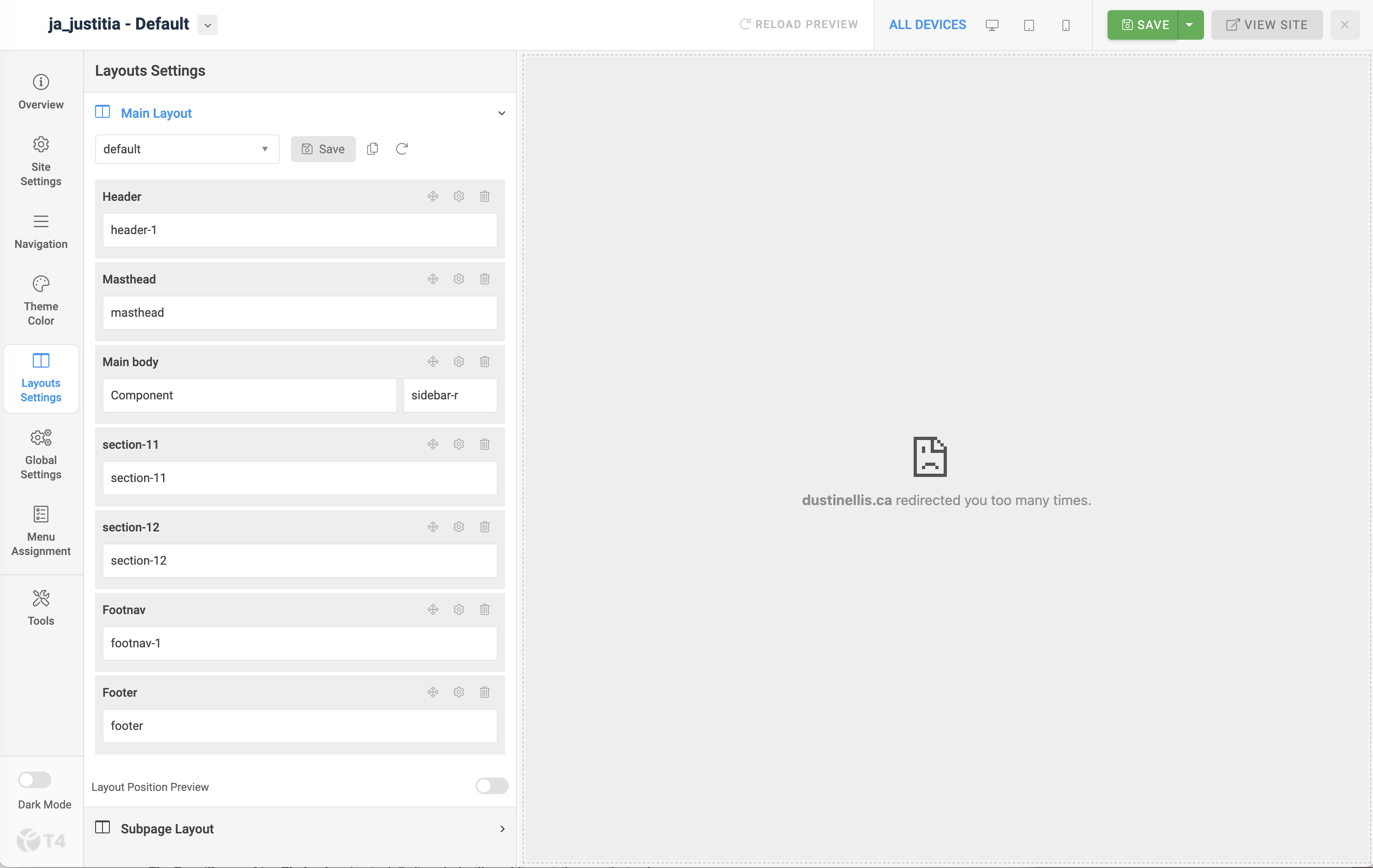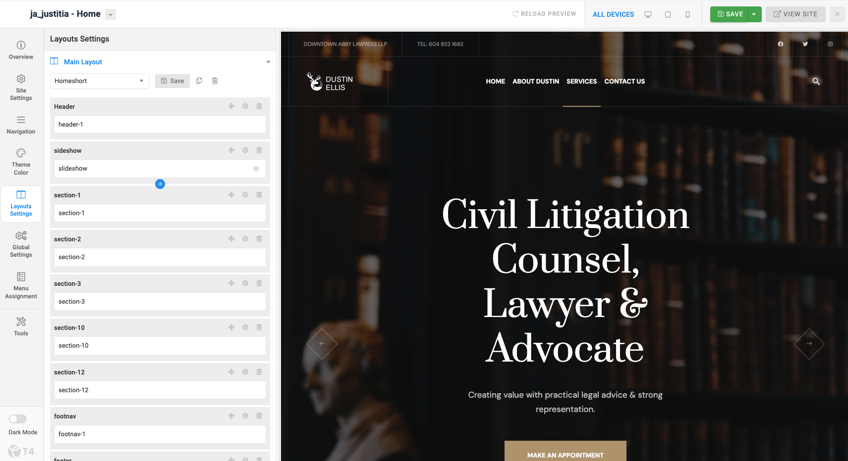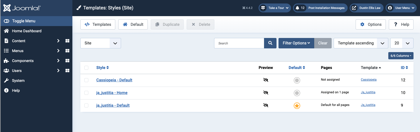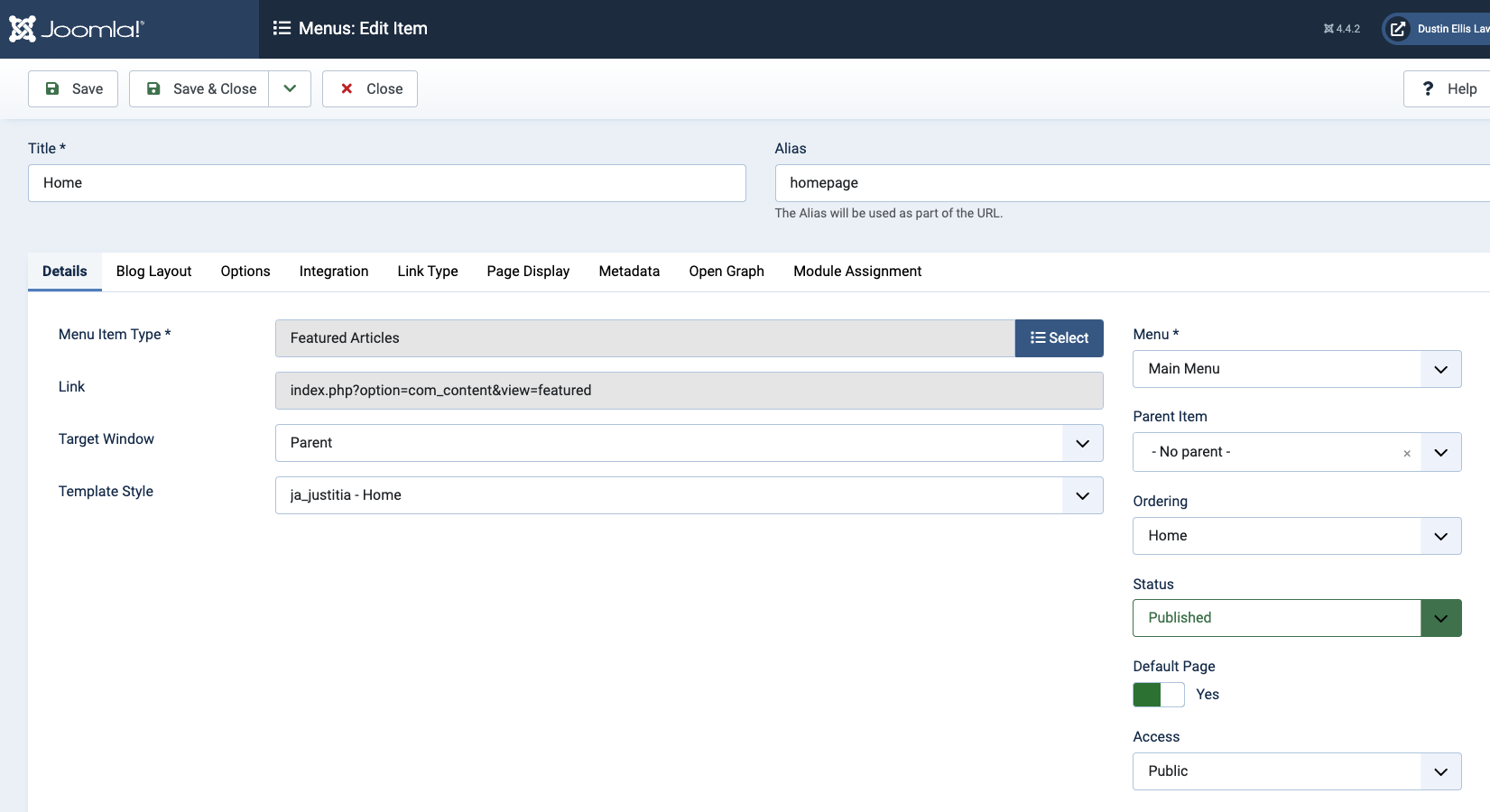 2/ ja_justitia - Default: sort of works? the home page button sends to some random page: The template styles will allow you to select the menu item for each page with many layouts, you can duplicate the template style and change the layout with the blocks.