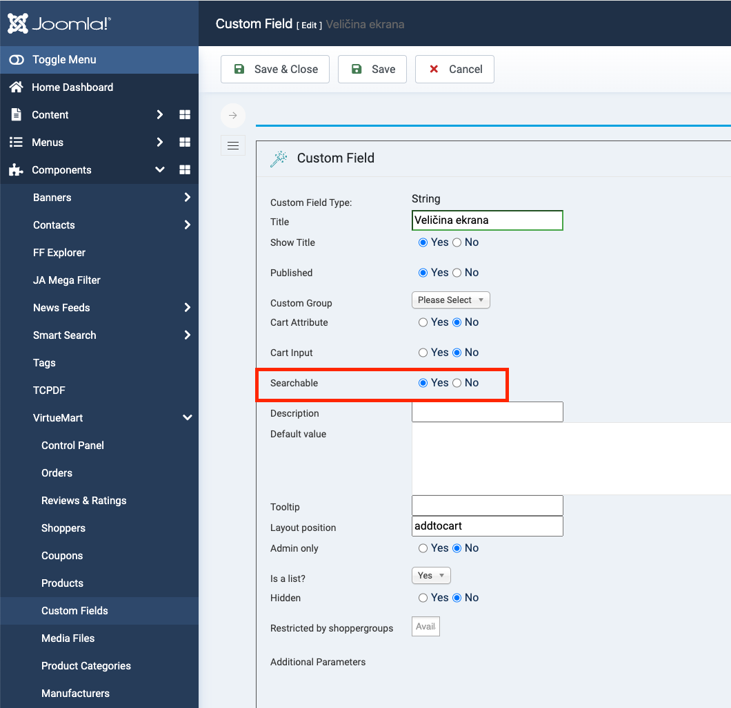 saguaros Thank you! Now my custom fields are visible in the search but when I select one of them, I get an empty list of products even though I have products that I have added a custom field to. Where could I have made a mistake so that this doesn't work for me?