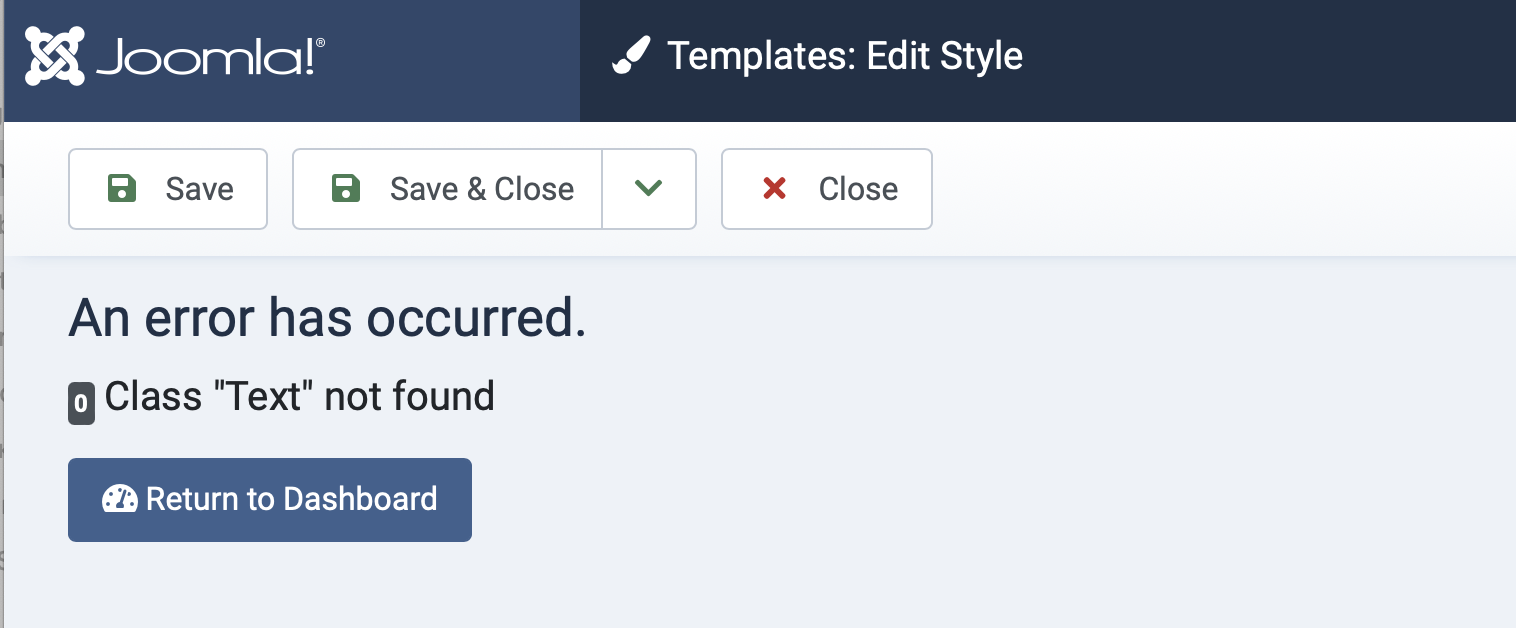 When attempting to open any style of educates template I get the following error: