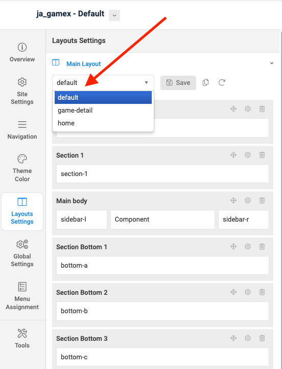 It's due to the Layout configuration in template on your site, these pages are assigned to default template style: ja_gamex - Default, however, you assigned the home layout for this style - which doesn't include the component block so no content displayed there. I just changed to default layout and it's working: