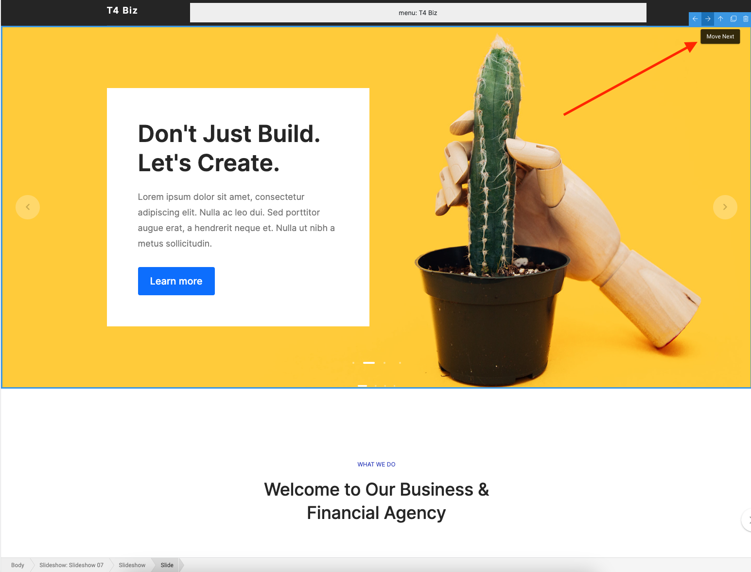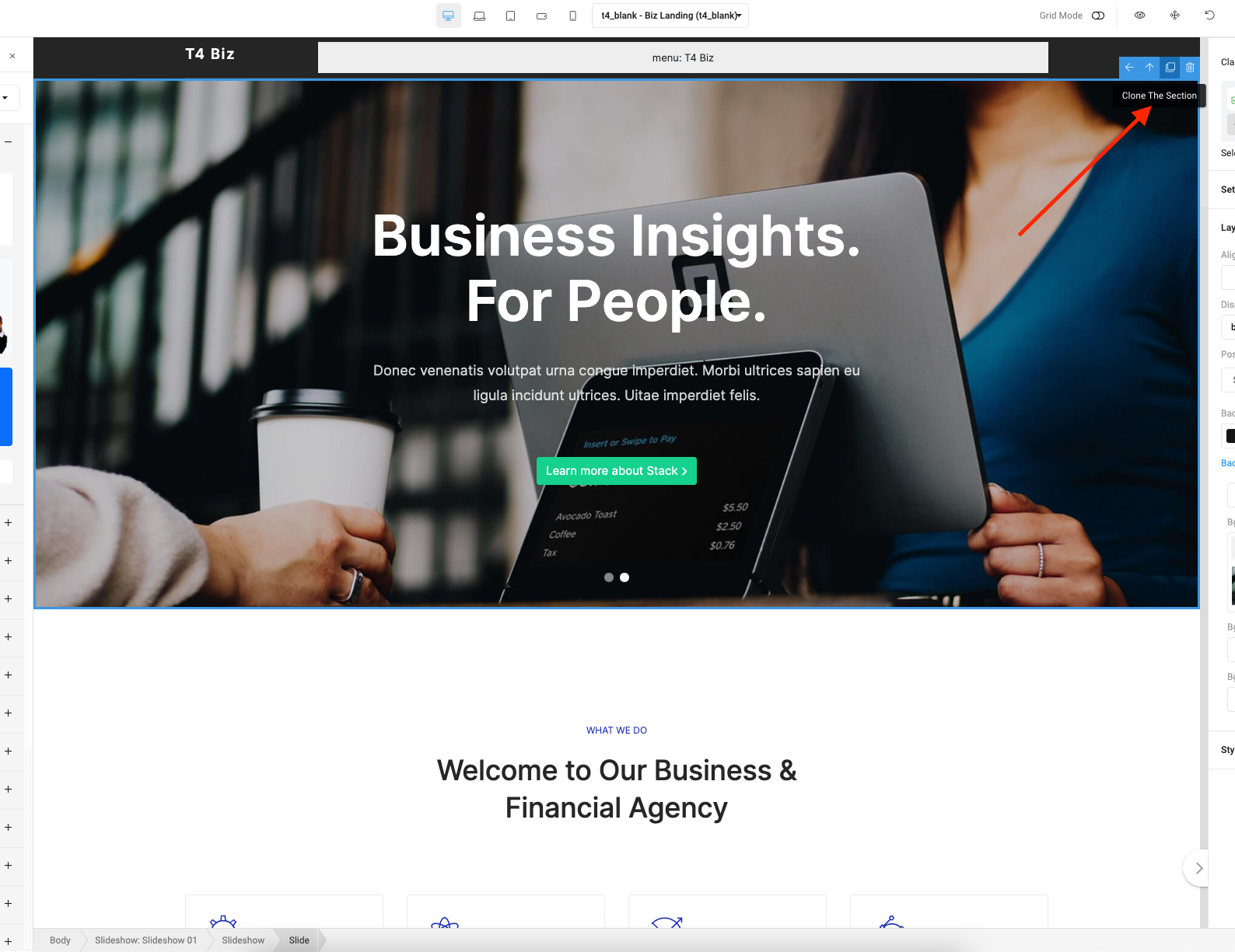 Thank you. Clicking on the "Clone this section" adds a slide. But it is very easy to mess whole things up when I go further to modify the content. The "next/prev" buttom got messed. It's a frustrating experience to fight with slideshow block. Any video tutorial could help me get on pagebuilder? Thank you. The Joomlart youtube channle is quite out of date.