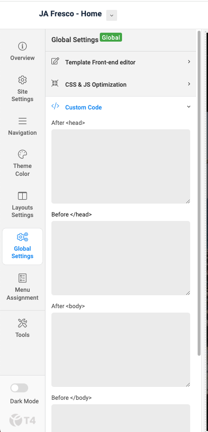 hi, I should insert the cookie banner on the home page on the site with JAFresco template, but I can't understand where to insert the code. I knew it had to be placed on the index page before the </body> tag.