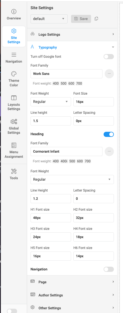 About the Typography, you can find it in template >> Site settings >> Typography: