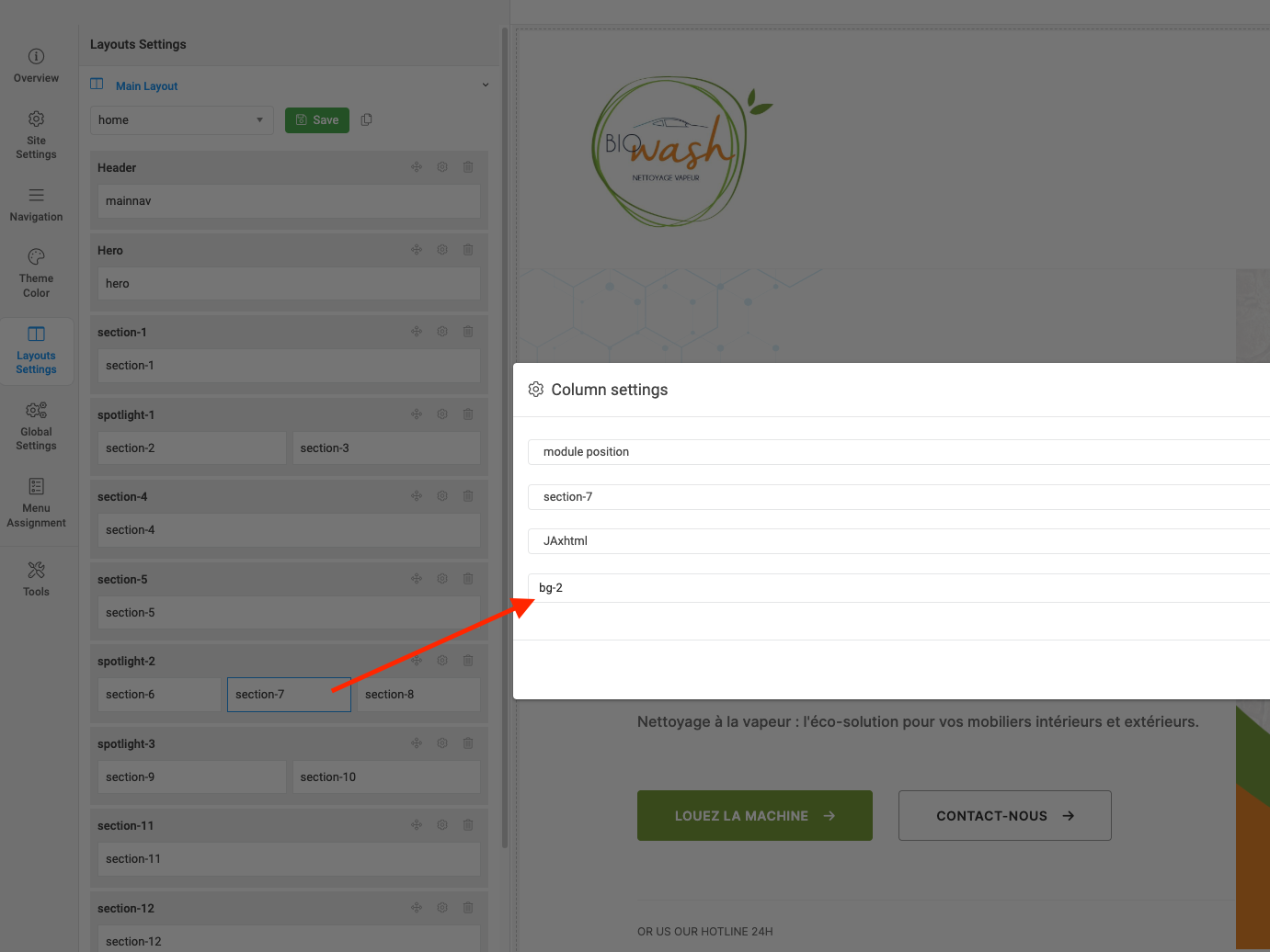 Each module in this spotlight-2 section is added with a custom class and template has style for these classes: