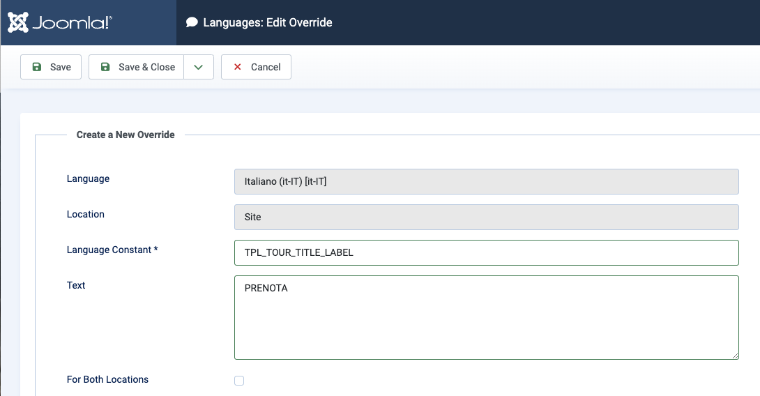 2/ Click New button and add translation for TPL_TOUR_TITLE_LABEL constant: