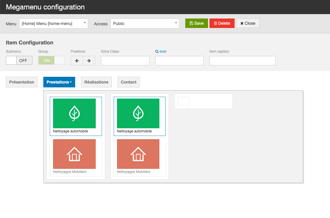 You can access backend settings of Uber template >> Megamenu >> select that 'PRESTATION' item and edit the content of its dropdown menu as you wish.