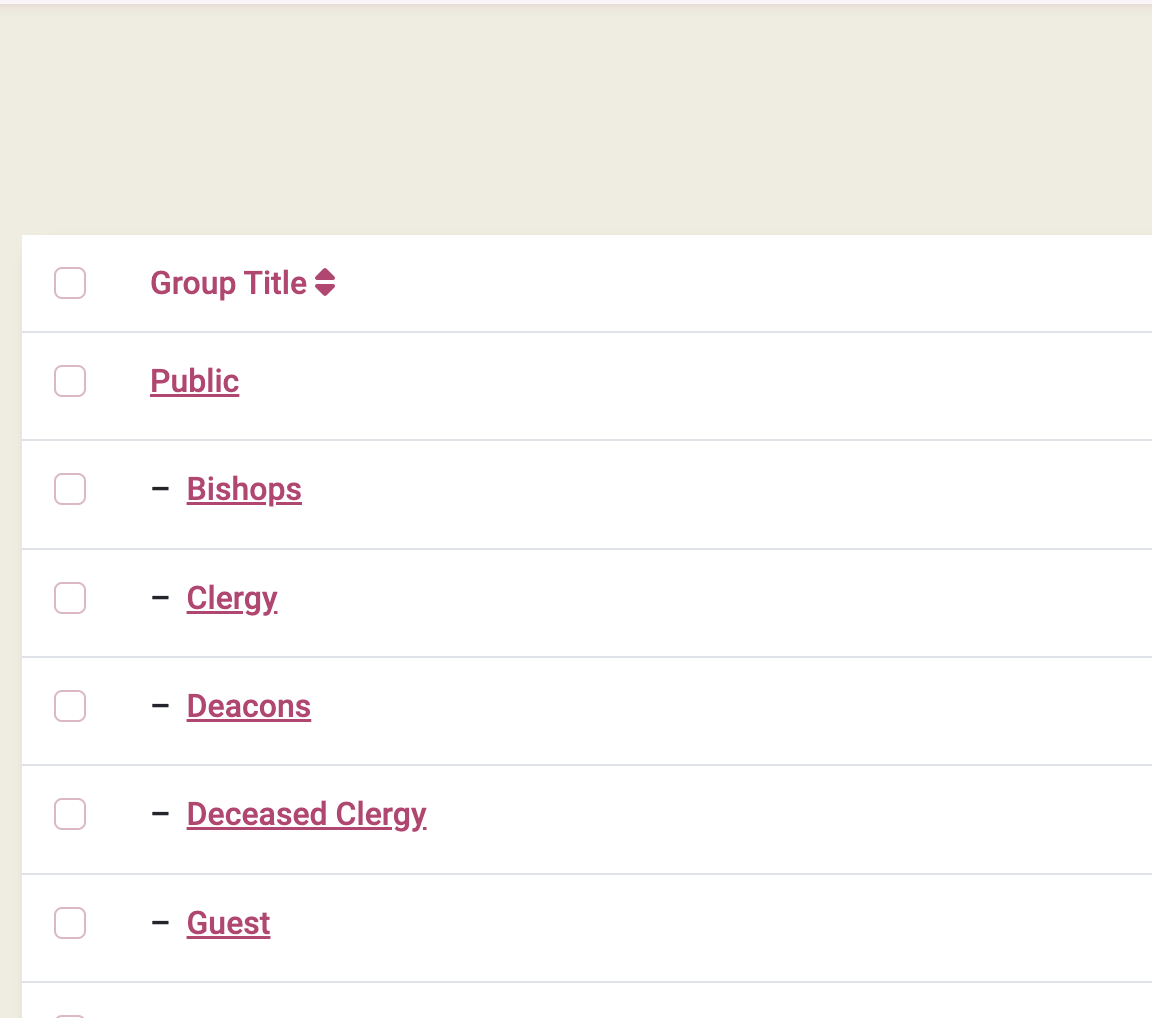 I'd like to make author listing pages (customised as Peolpe Profiles in my implementation) for the groups Clergy and Deceased Clergy but somehow the menu links only lead to one group and can't pick from the other.