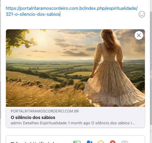 Facebook may not update the new information of articles on your site yet. I just tried to share this one: /index.php/espiritualidade/321-o-silencio-dos-sabios