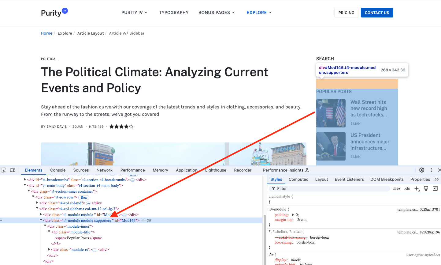 I'm trying to create custom css for a module under this template but the modules are not displaying the "module class" information.