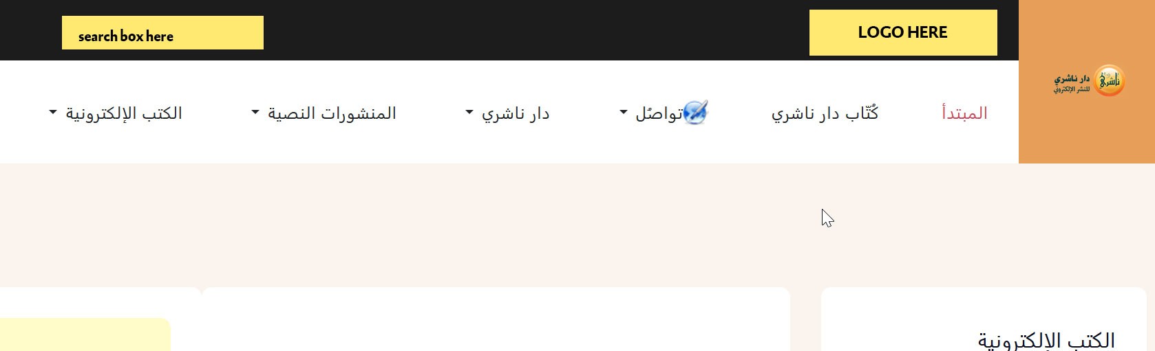 Hello, How do In control what appears on the black upper bar. I'd like to add a logo + a search box as you can see here: Is this area controlled by "header-1"? What do I edit exactly? Thanks.