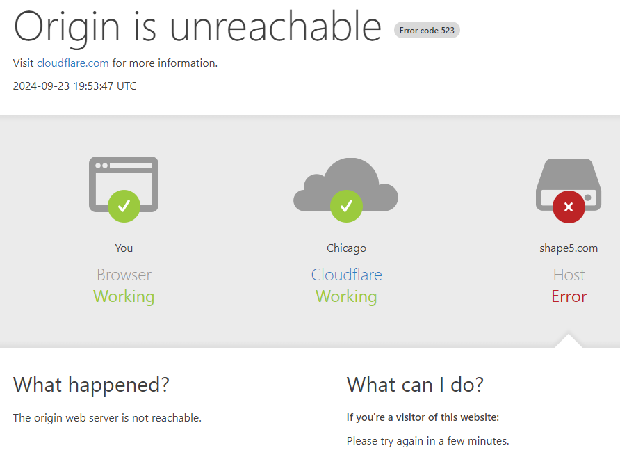 I tried Firefox and Chrome to get to shape5.com and neither will allow entry in to the website. I have attached a screenshot of page it provides.