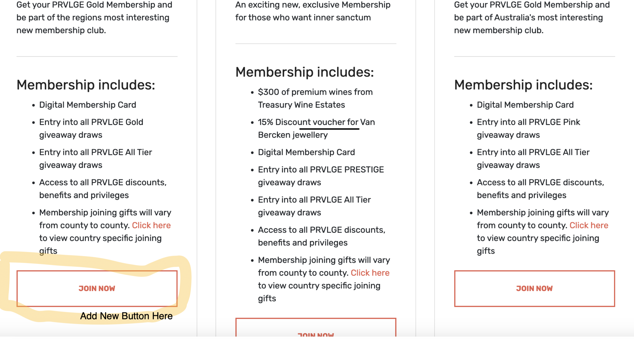 you can see 2 new fields for the second button now, I just added a sample for the PRVLGE GOLD one, kindly check.