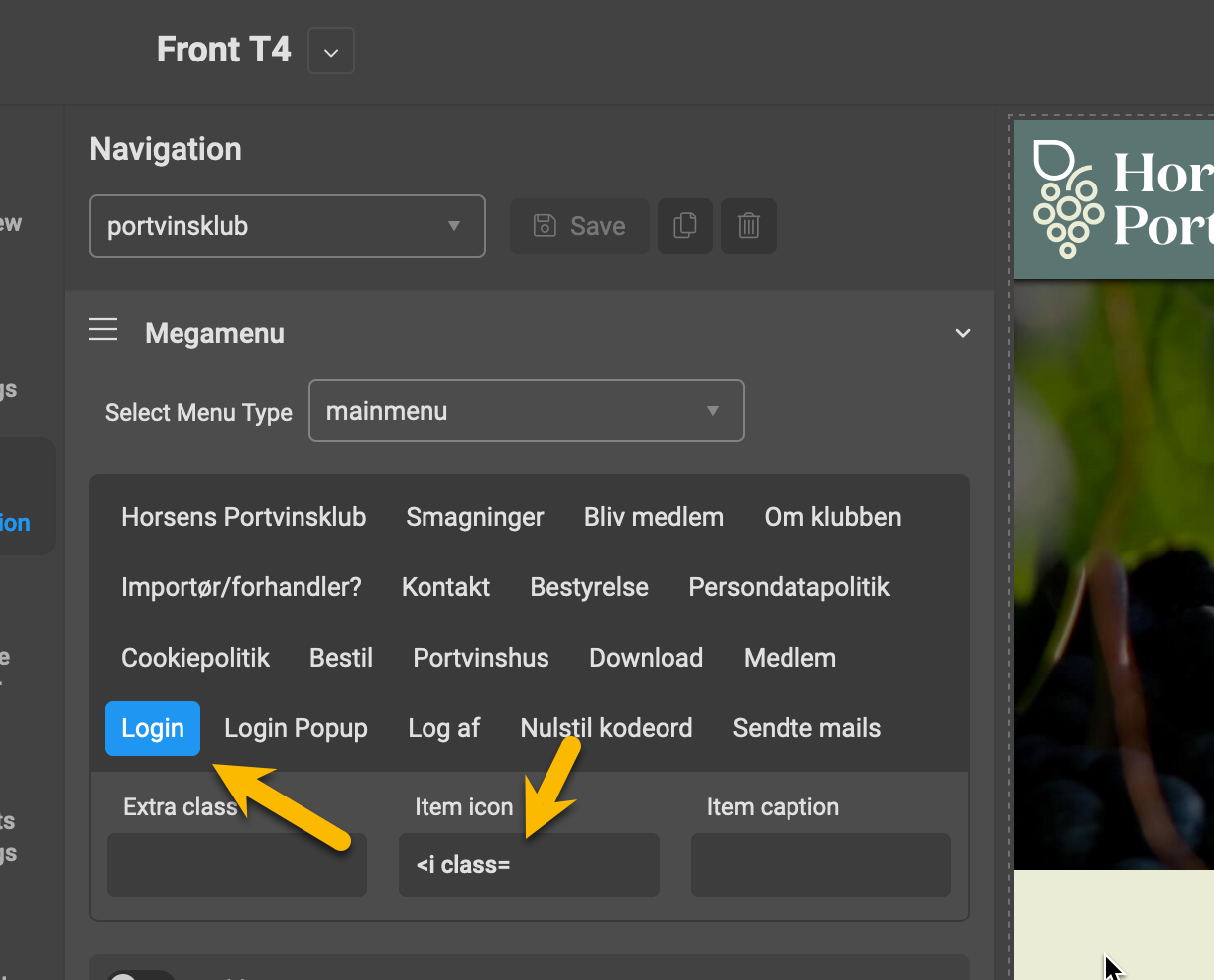 When I want to use an icon in the menu of T4, it doesnt work when I insert: