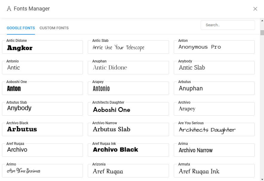 None of the Google fonts are correct. The captions don't match with the actual google font name. Can't choose a decent font for anything.