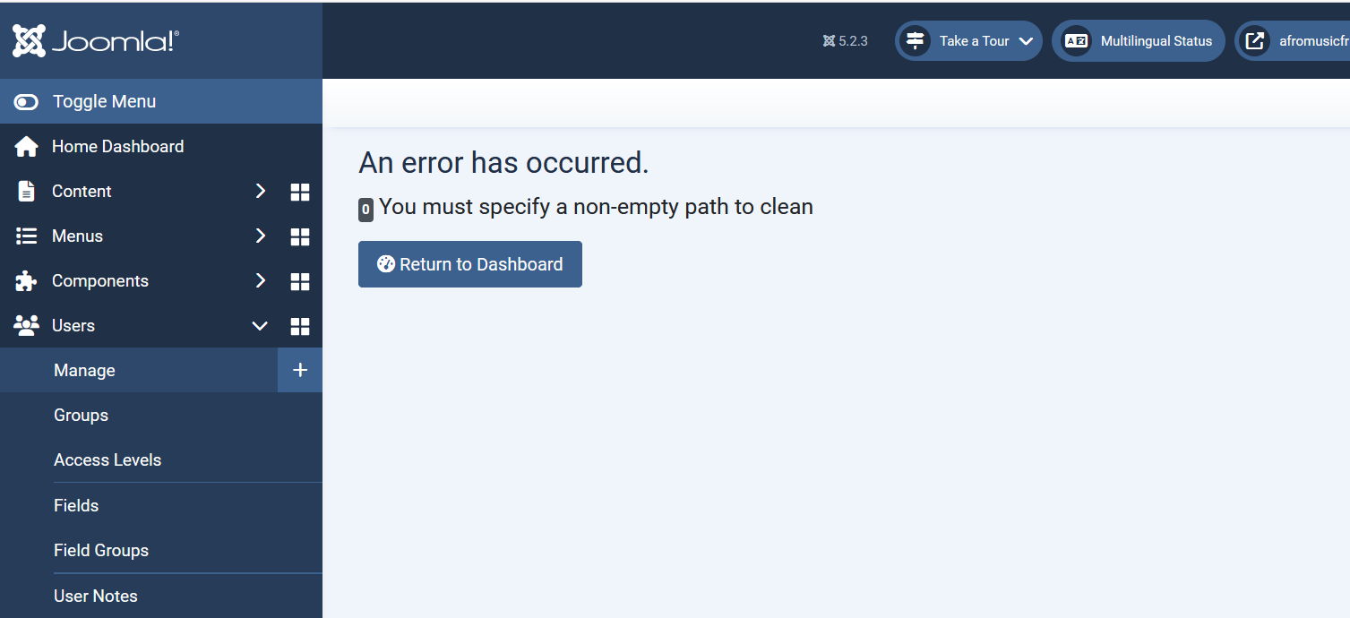 Also tried Debug and in: Server -> Error Reporting was put to maximum to try to find the error but also not successful and only led to my website being scrambled. I have to restore my website from a backup using Akeeba Backup.