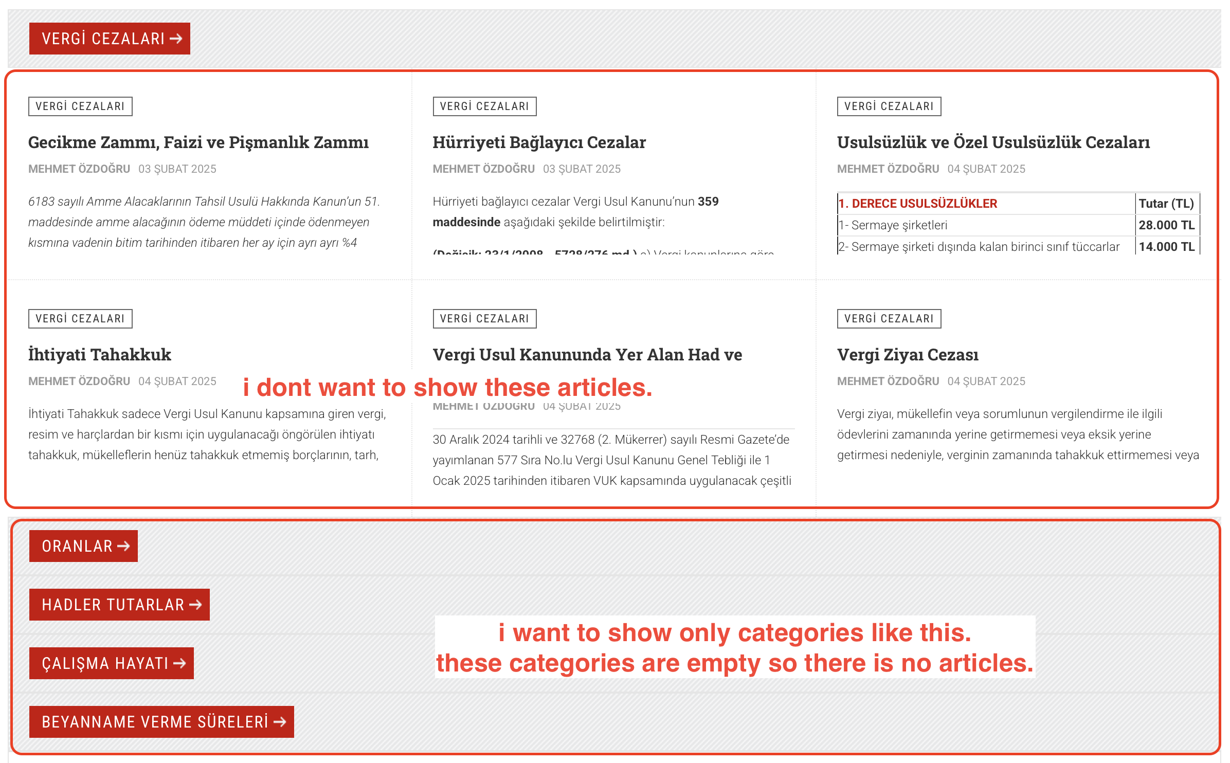i want to show only categories without articles. how can I do that? Number of Articles = 0 did not work!!!