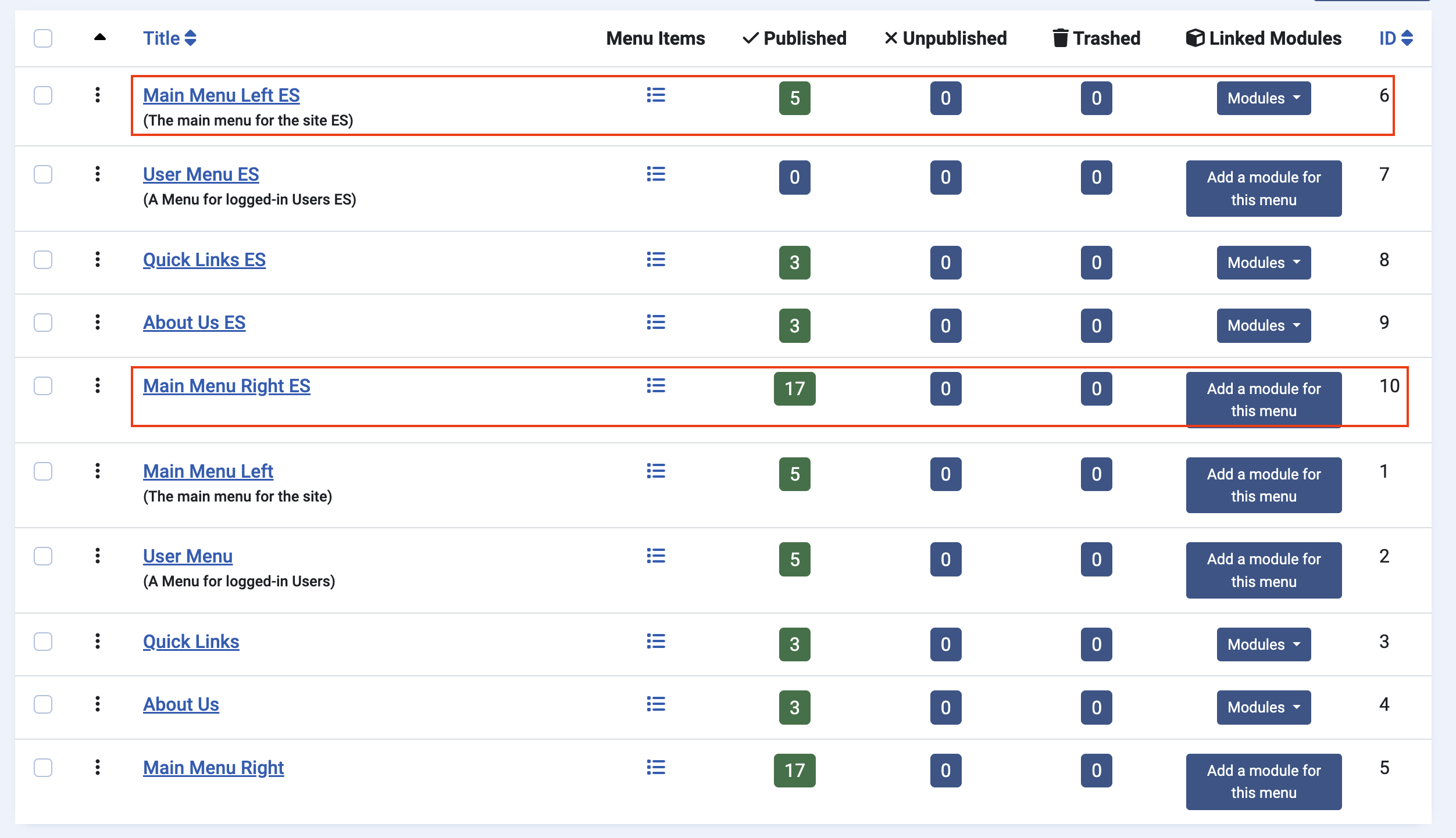 sophieb Thank you so much Claude, I followed your steps regarding the menu: renaming + replacing those lines on default.php file and it worked!! I thought this would also fix another issue but seams not. Please check screenshot attached. The english Main Menu are showing nicely on top of the slide show image. But the Spanish has a grey bar and the logo + Menus (right+left) don`t display on top of the slide show image.