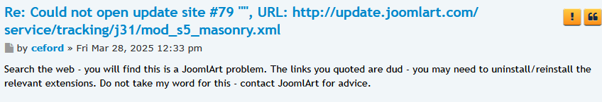 I have already tried that several times. I have tried to down load the latest update and use the J downloader, both present the same issue. I have updated other sites with the same template as well with no problems. My understanding is that it has something to do with an incorrect path folder. I can't really find the exact fix anywhere on line.