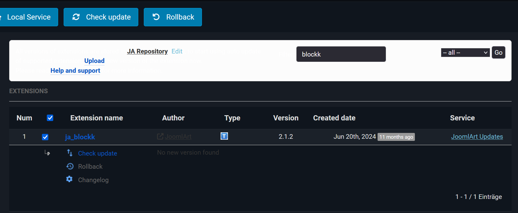 So I want to do update, through the Extension Manager,... but seems not to be visible,...