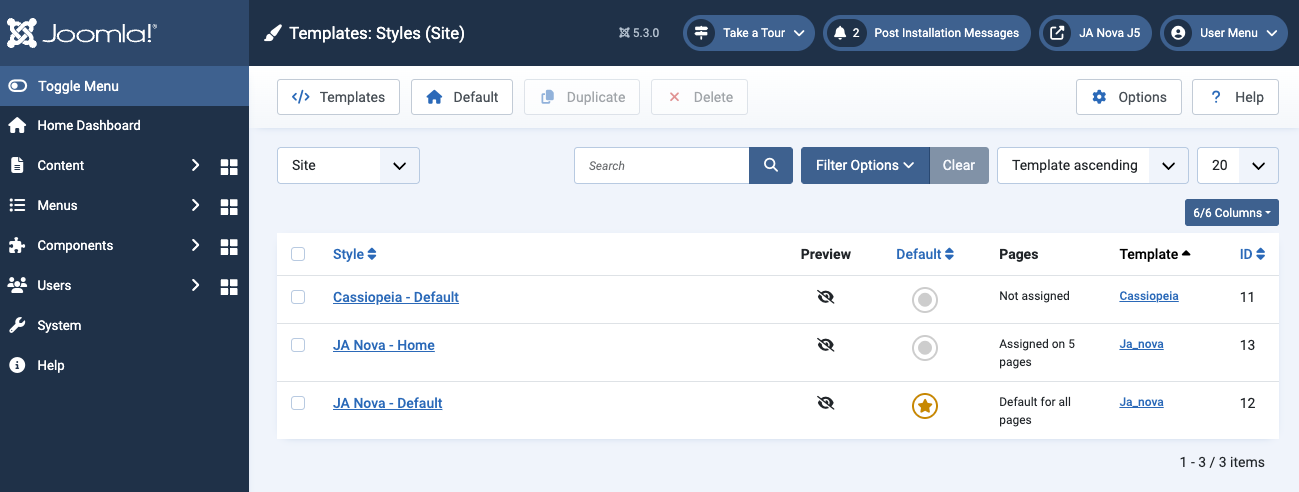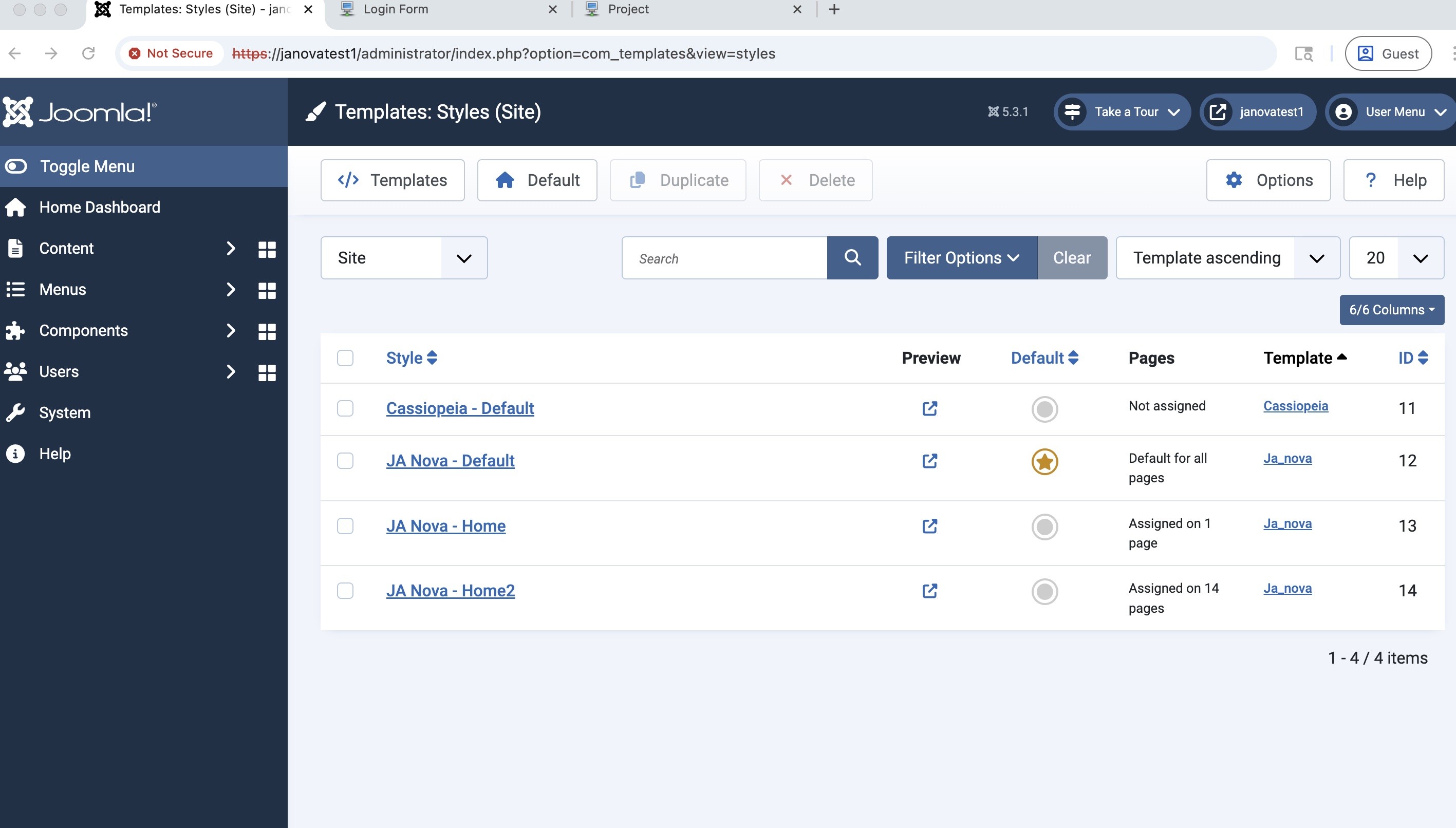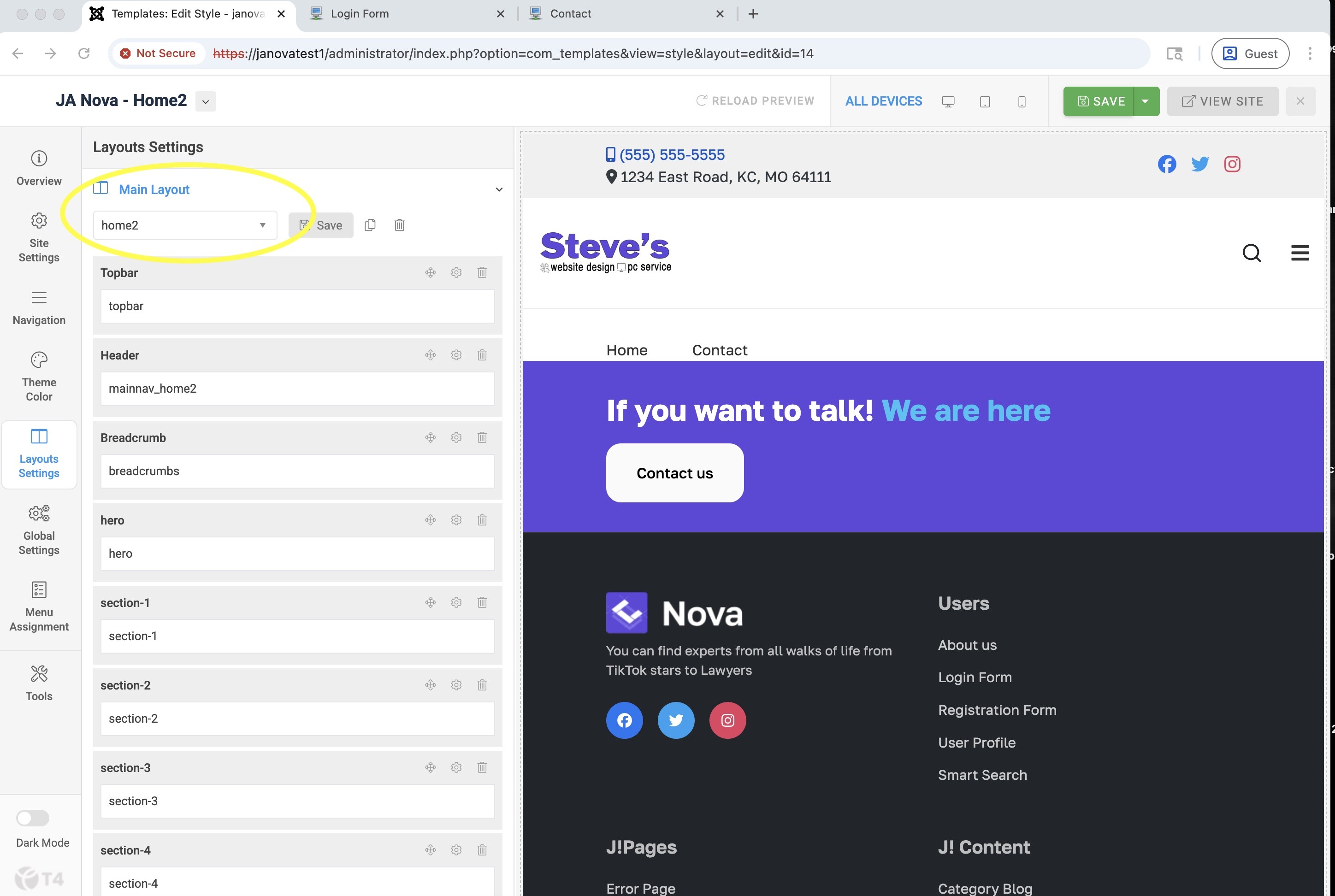 I can assign a different template style to the contact menu. But the contact component does not appear. See image below.