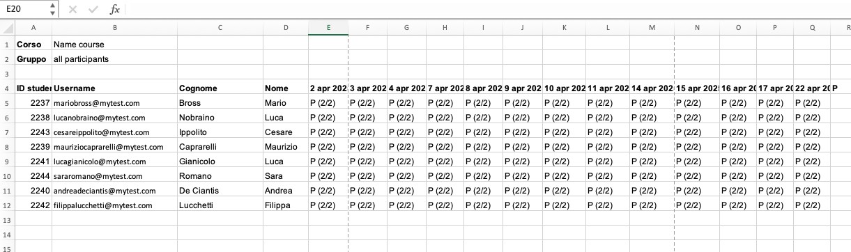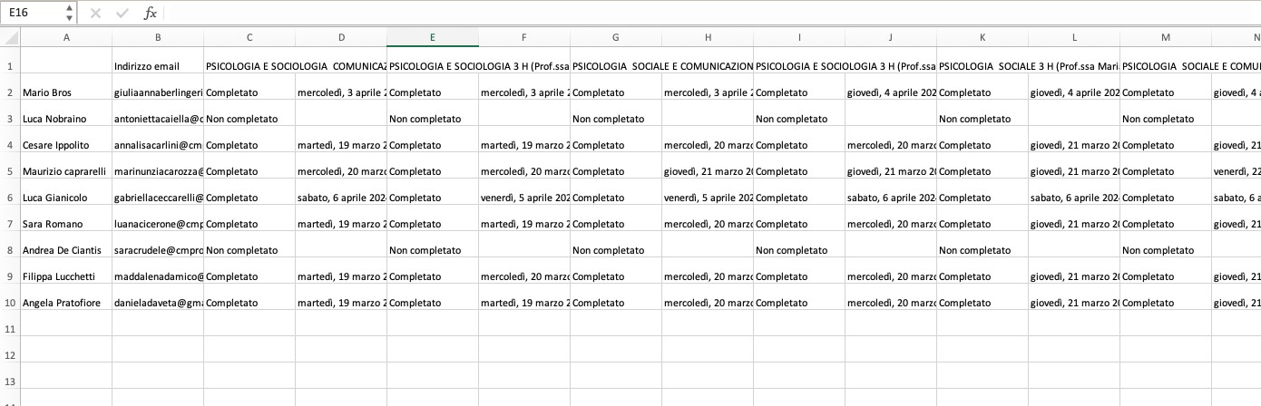 2) a list of students, indicating whether or not they completed the individual lessons and the course.