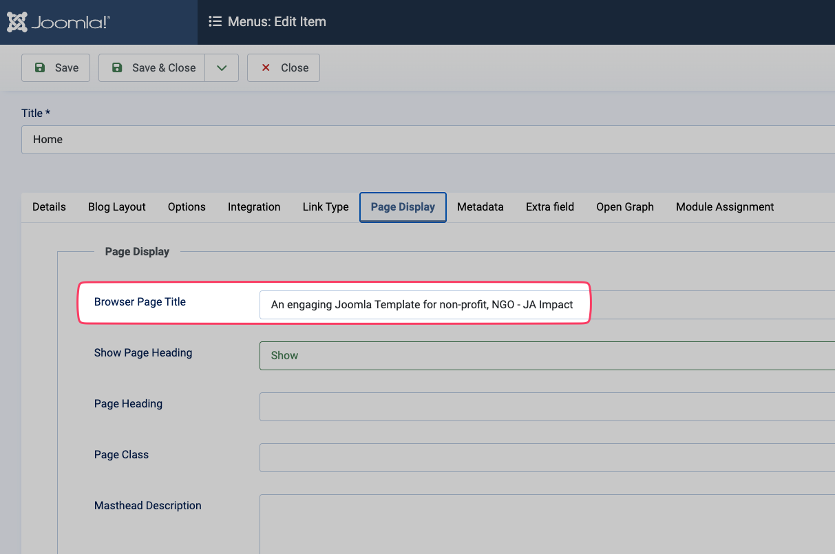 I can't change the name of the main page in the browser's address bar, it changes in all the other articles but not in the main one.