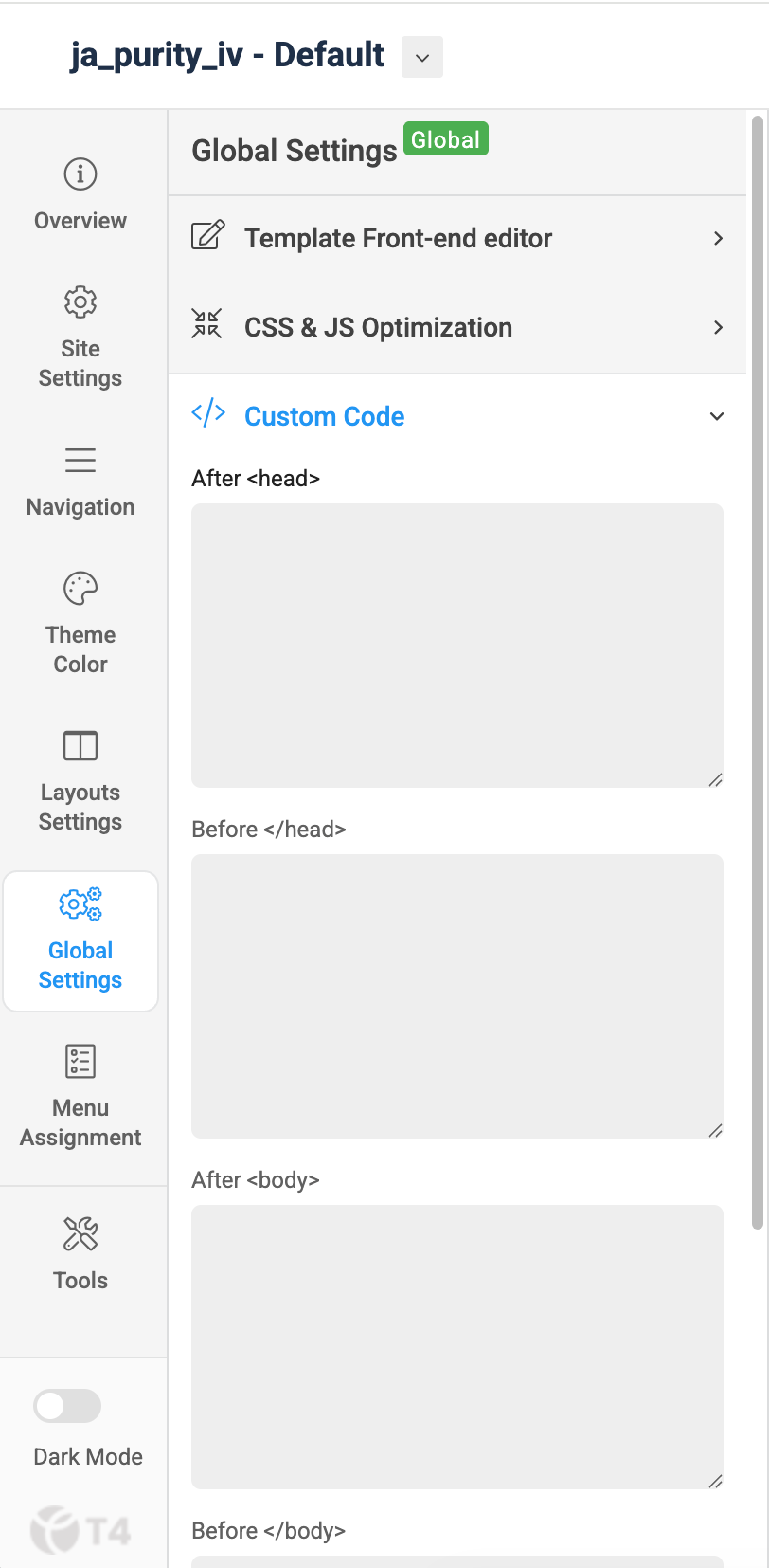 If you want to add it globally, you can access JA Purity IV template style >> Global settings >> Custom Code and load the script there.