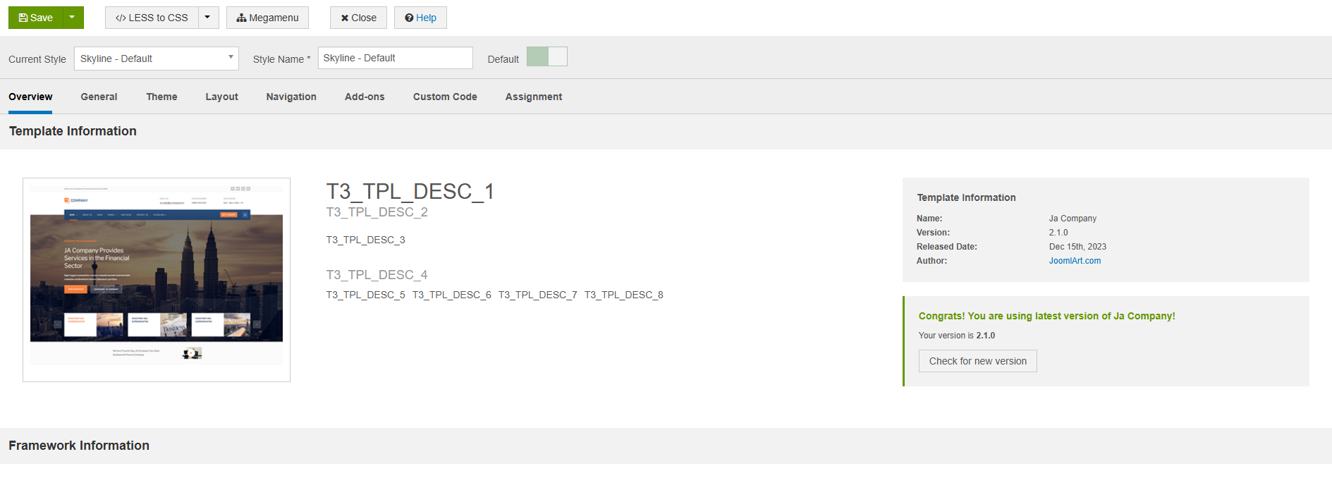 I notice that in template settings and also the heading of the mobile nav it seems like the text is not being picked up from the en-GB language file. Please see screenshot