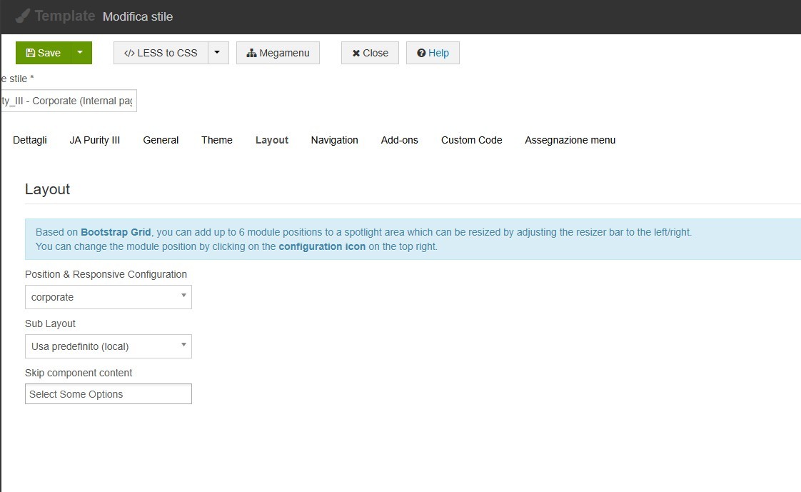 Hello Heinz, thank you very much! Following your instructions, I can access the configuration panel again. However, the graphics seem a bit more basic compared to what I can see on the same site with Joomla 4. I’m attaching two images as examples: the first one (LayoutJoomla4.jpg) shows the layout style configuration panel with Joomla 4, while the second one (layoutJoomla5.jpg) shows how I see the same panel now. Could there be another configuration issue, perhaps due to an update that wasn’t fully completed? If so, how can I get to a “clean” state for T3 without losing any customizations? Thanks again for your help.